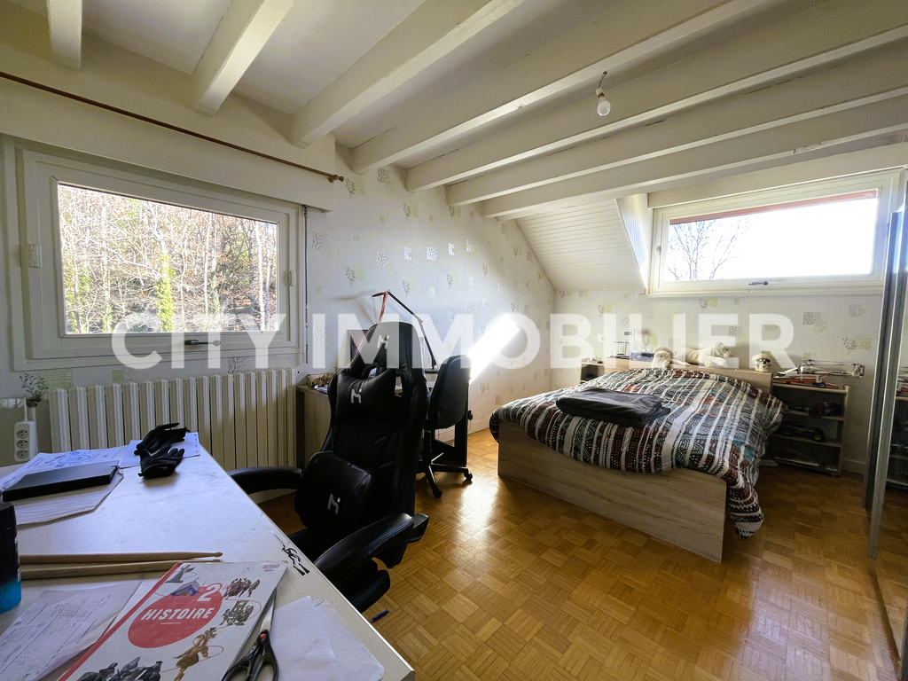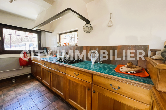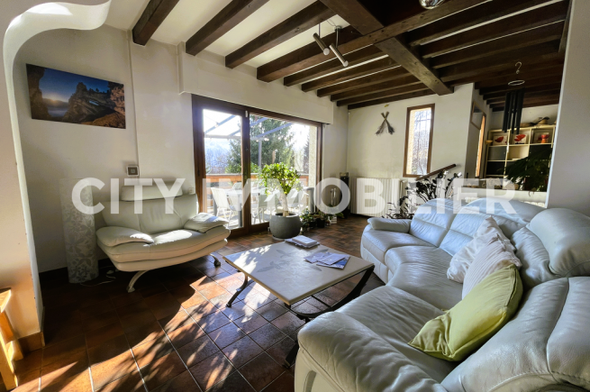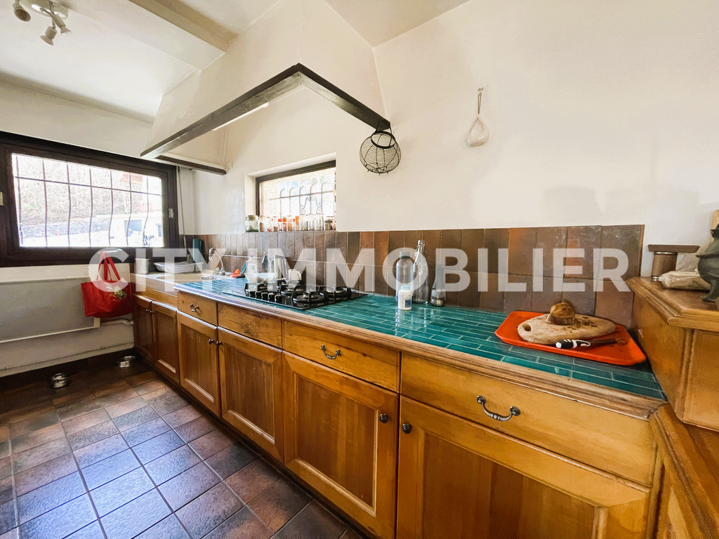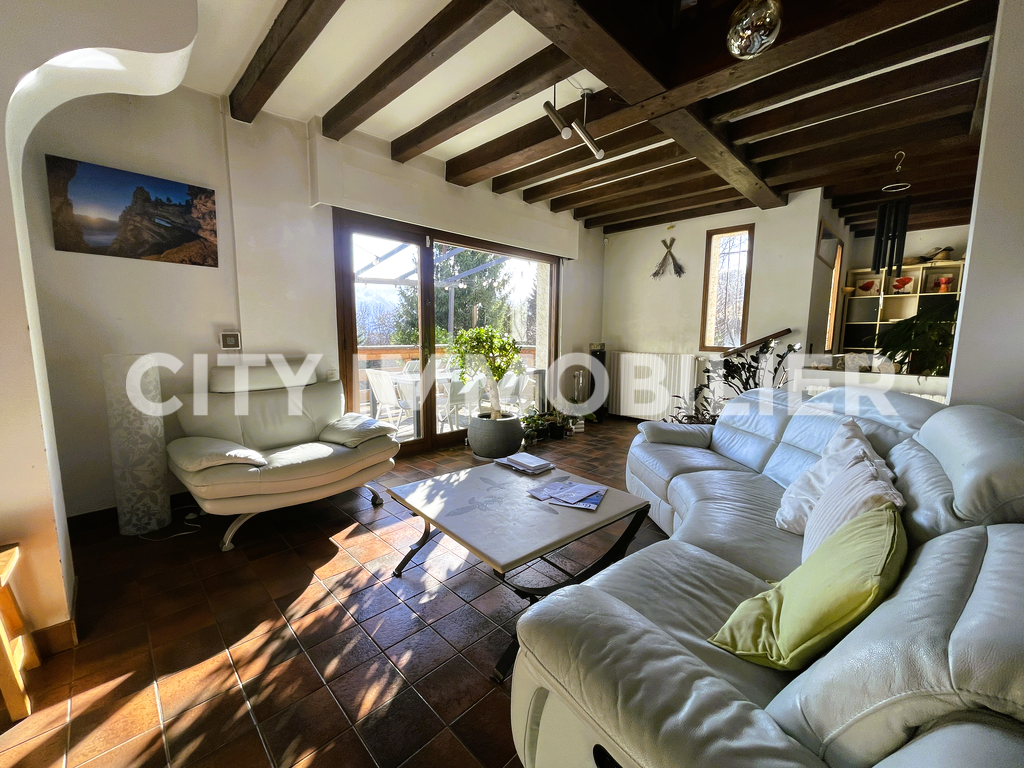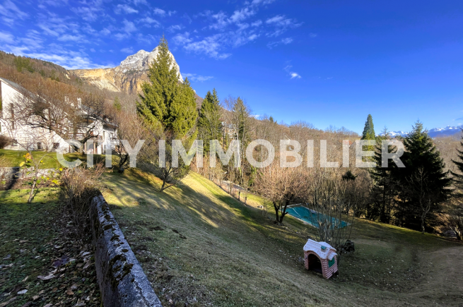 Coup de cœur assuré pour cette maison d'architecte profitant d'une vue extraordinaire sans vis-à-vis sur la chaîne de Belledonne et sur la dent de Crolles. Pièces de vie en demi-niveau ouvrant sur une terrasse avec vue sur le parc privé de près de 7 000 m² profitant d'un étang de pêche et d'une piscine. Cuisine équipée, 5 chambres, bureau, buanderie, garage, atelier, etc. Idéal pour une famille recherchant le calme et la nature.