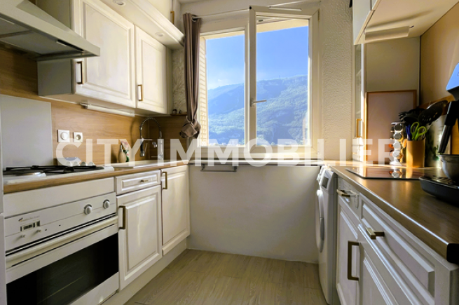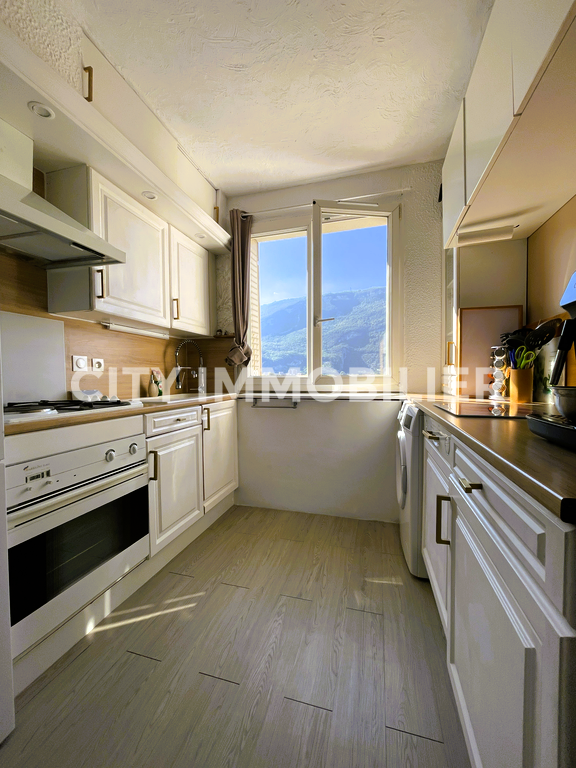 Idéalement situé proche des commodités et des transports. Lumineux T4 transformé en T3 au 4ème et dernier étage d'une résidence sécurisée et bien entretenue. Composé d'une cuisine équipée ouverte sur un grand séjour donnant sur un balcon profitant d'une vue dégagée sur les montagnes, 2 chambres (possibilité 3) dont une avec dressing. Une salle de bains équipée d'une double vasque et d'une douche à l'italienne. Une cave vient compléter ce bien. (Possibilité de louer un garage dans la résidence).