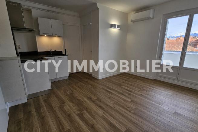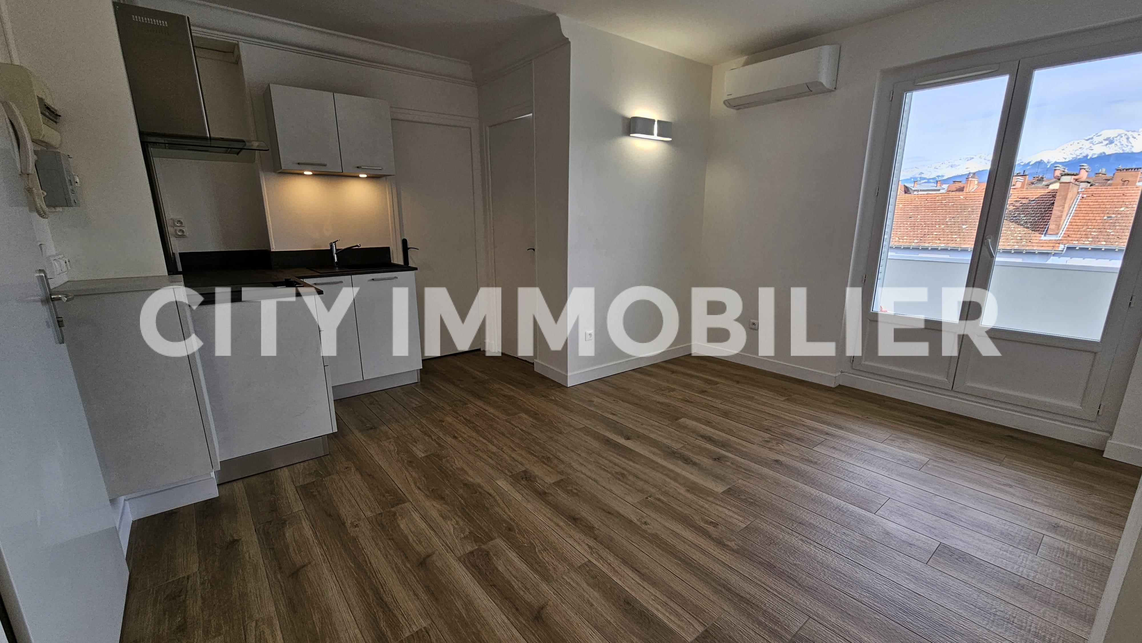 Studio au 7ème étage avec ascenseur situé 7 avenue Général Champon à Grenoble dans copropriété sécurisée avec digicode puis interphone - Composé d'une cuisine équipée - 1 salle d'eau avec douche et meuble vasque - wc indépendant - machine à laver - clim réversible - un balcon avec vue montagne - Loué avec cave - Loyer de référence majoré 385 € + complément loyer 99 € + charges 11 € - Dépôt de garantie 484 € - Frais d'agence 284.05 € dont état des lieux 65.55 €