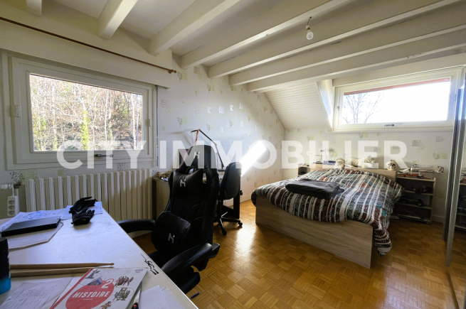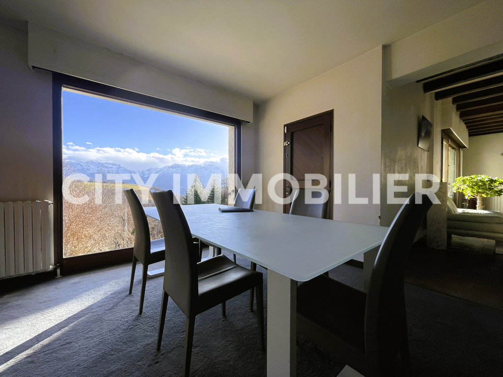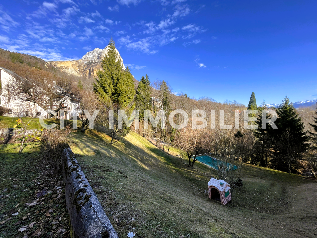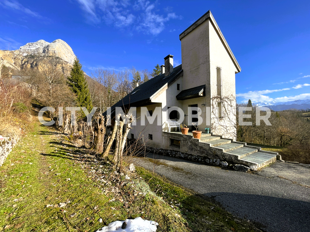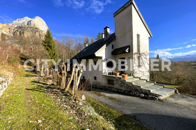 Coup de cœur assuré pour cette maison d'architecte profitant d'une vue extraordinaire sans vis-à-vis sur la chaîne de Belledonne et sur la dent de Crolles. Pièces de vie en demi-niveau ouvrant sur une terrasse avec vue sur le parc privé de près de 7 000 m² profitant d'un étang de pêche et d'une piscine. Cuisine équipée, 5 chambres, bureau, buanderie, garage, atelier, etc. Idéal pour une famille recherchant le calme et la nature.