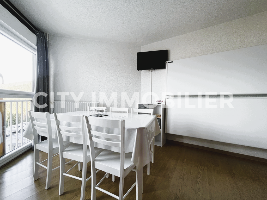 Idéalement situé au cœur de la station des 7 LAUX (immeuble les Ayes 2), grand studio cabine entièrement et confortablement équipé pour 6 personnes. Cuisine avec plaque de cuisson électrique, hotte, lave-vaisselle, four micro-ondes et réfrigérateur. Vaste salon/salle à manger avec vue dégagée sur la vallée. La salle de bain comprend une cabine de douche et un meuble vasque avec miroir. L'espace nuit offre un grand rangement et une machine à laver. Aucun travaux à prévoir, vous pourrez ainsi profiter pleinement de la montagne. Ce bien est vendu avec un casier à ski avec accès direct aux pistes. Le chauffage et l'eau chaude sont inclus dans les charges.