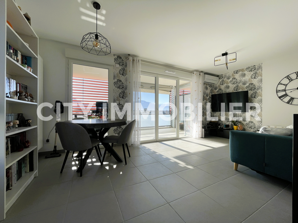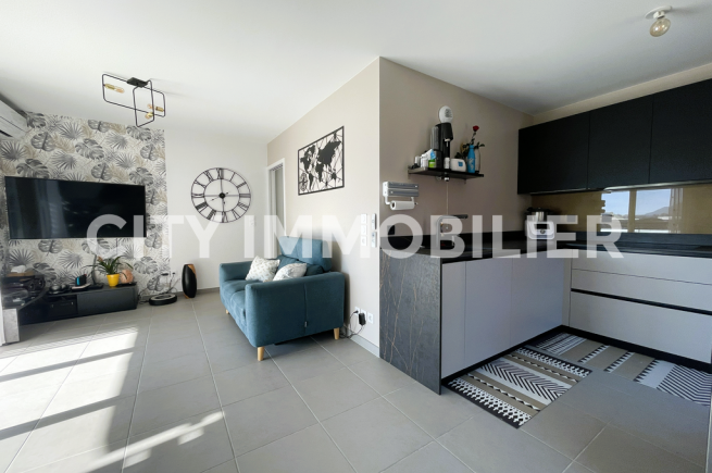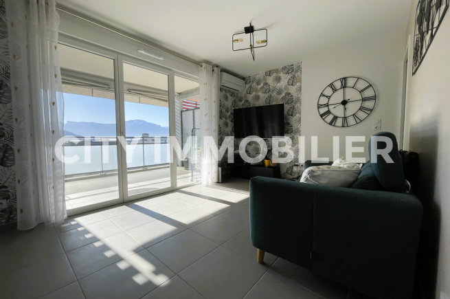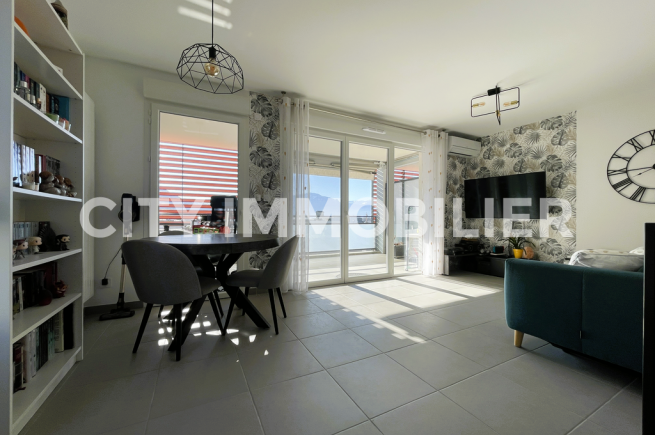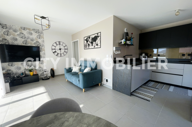 Coup de cœur assuré pour ce lumineux et fonctionnel T3. Pièce de vie ouvrant sur une belle terrasse profitant d'une vue dégagée sur les montages. Cuisine et sdb équipées, 2 chambres avec placard. Ce bien est vendu avec un garage et une cave